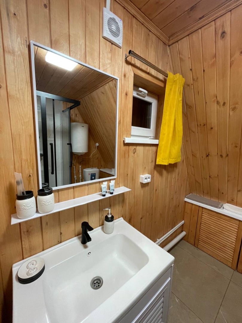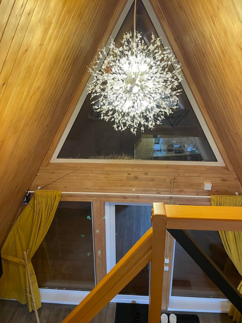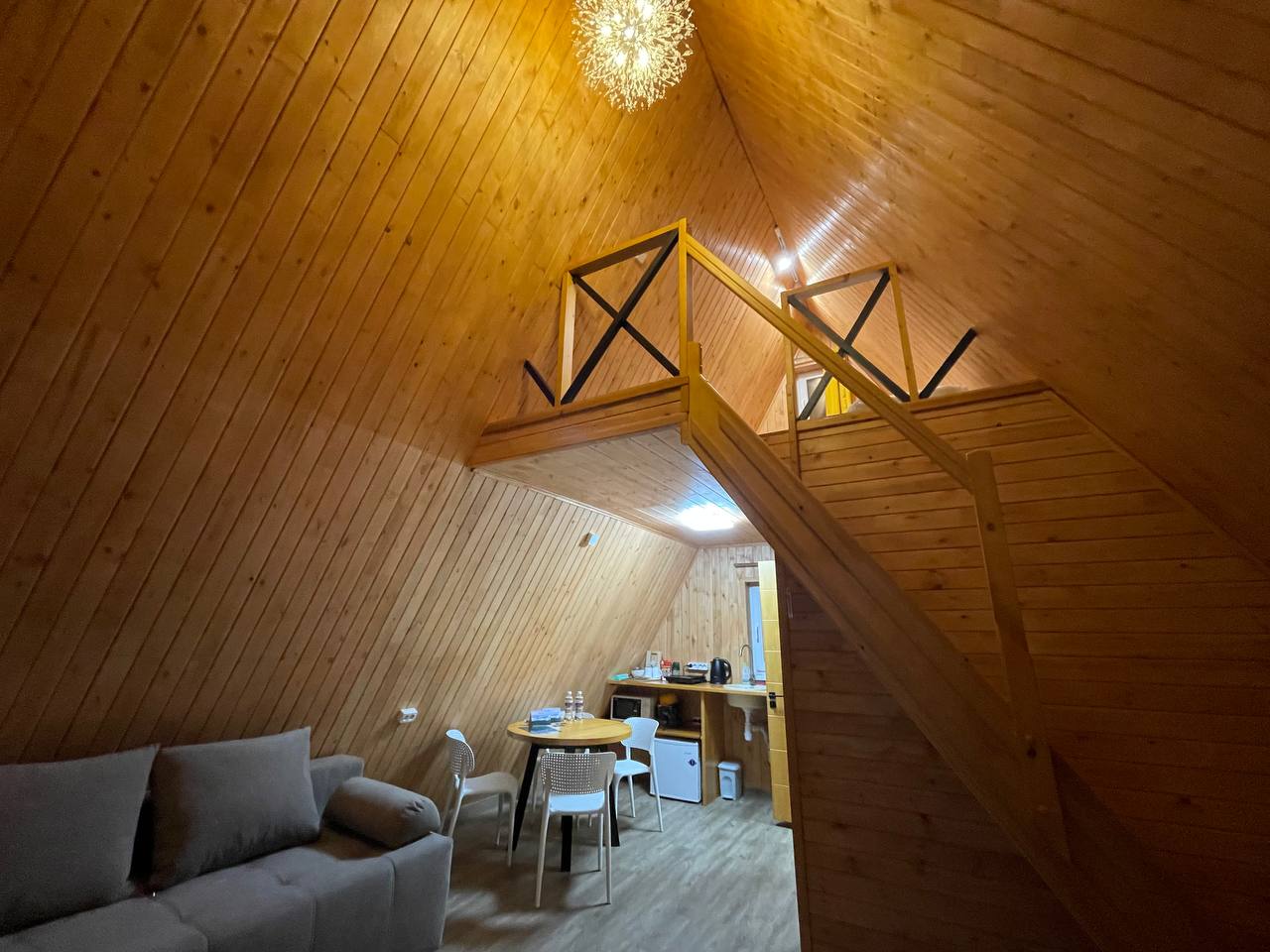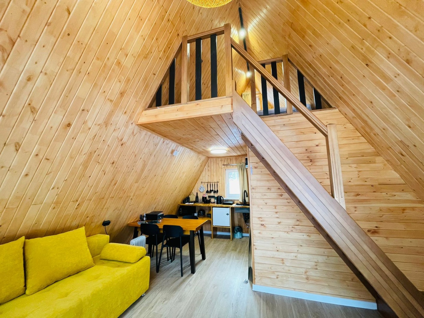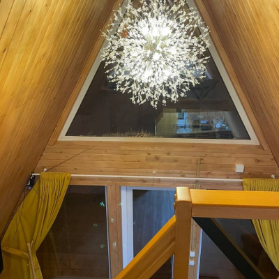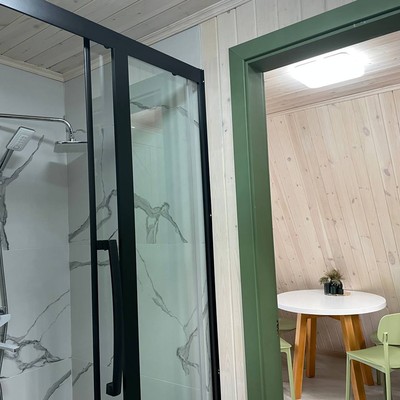 В отеле 12 уютных двухуровневых треугольных домиков А-фрейм с панорамными окнами. Все домики с теплыми полами и индивидуальной террасой. Выполнены из натурального дерева по современным технологиям. На первом этаже расположены гостиная и ванная комната, на втором этаже - спальня. В наличии микроволновая печь, минихолодильник, чайник. В ванной - косметические и гигиенические принадлежности. В гостиной зоне - удобный раскладной диван, ТВ. В спальне на втором этаже - две раздельные кровати с возможностью соединить в одну большую семейную кровать. На открытой террасе деревянные кресла. Также в каждом домике вас ждет высокоскоростной вайфай и смарт-тв.